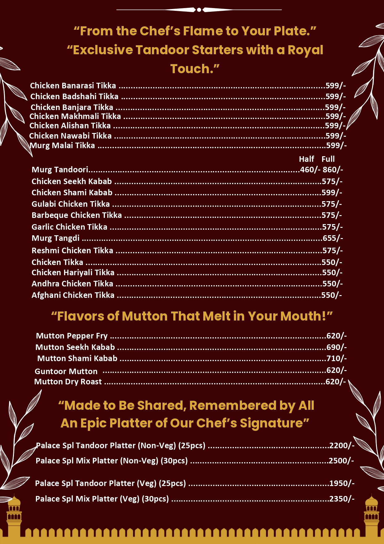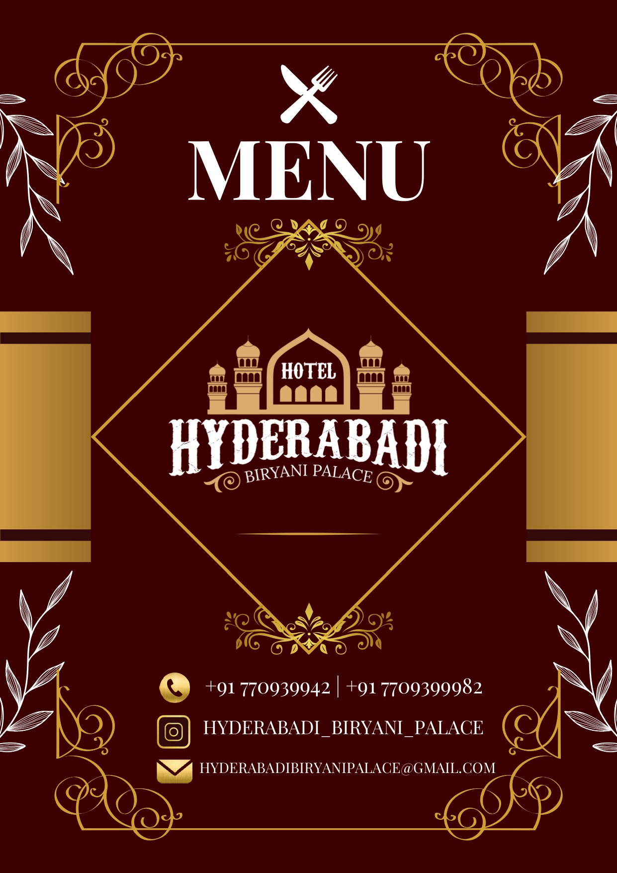 At Hotel Hyderabadi Biryani Palace, we follow traditional cooking techniques that define authentic Hyderabadi cuisine. Our signature Dum Biryani is slow-cooked in sealed handi pots, allowing the rich aroma of spices, premium basmati rice, and tender meat to blend perfectly. From smoky tandoor starters and flavorful kebabs to rich curries and traditional desserts, every dish is prepared with attention to detail and passion for excellence.